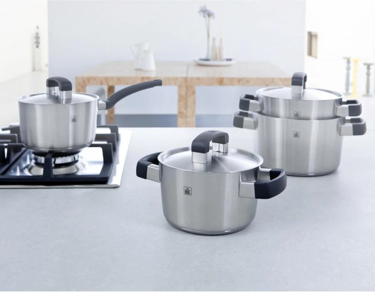 Voor alles wat gekookt of opgewarmd moet worden heeft deze pannenset een geschikte pan. Gebruik de BK Conical Cool Kookpannenset โ 4 delig voor het koken van soep, groenten of sauzen. De kookpannen zijn vaatwasmachinebestendig.
