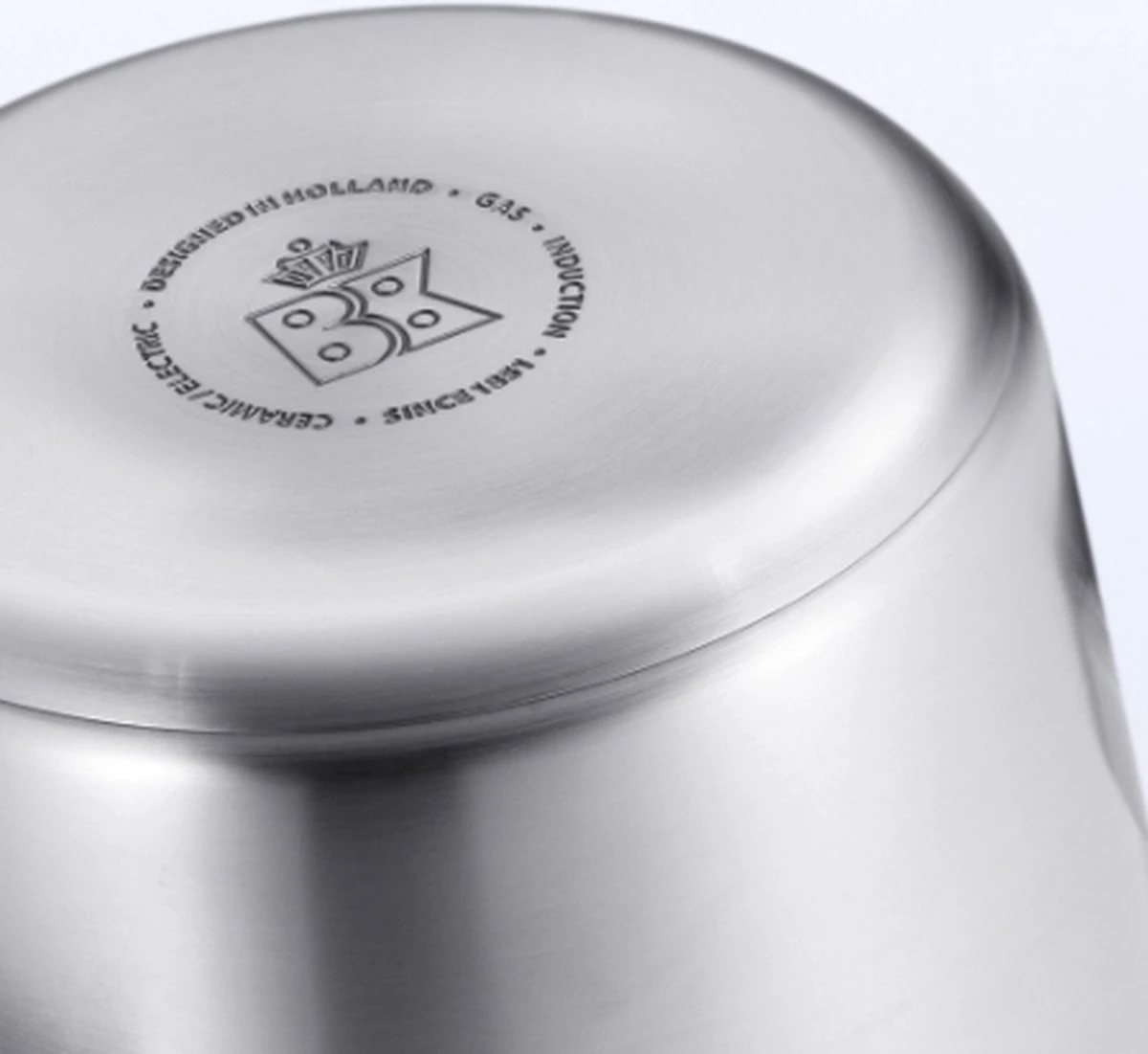 Alle pannen hebben een ingebouwde sandwichbodem, welke zorgt voor een snelle opwarming van de pan en een goede warmteverspreiding. De pannen zijn zo ontworpen dat je ze gemakkelijk kunt opstapelen.
