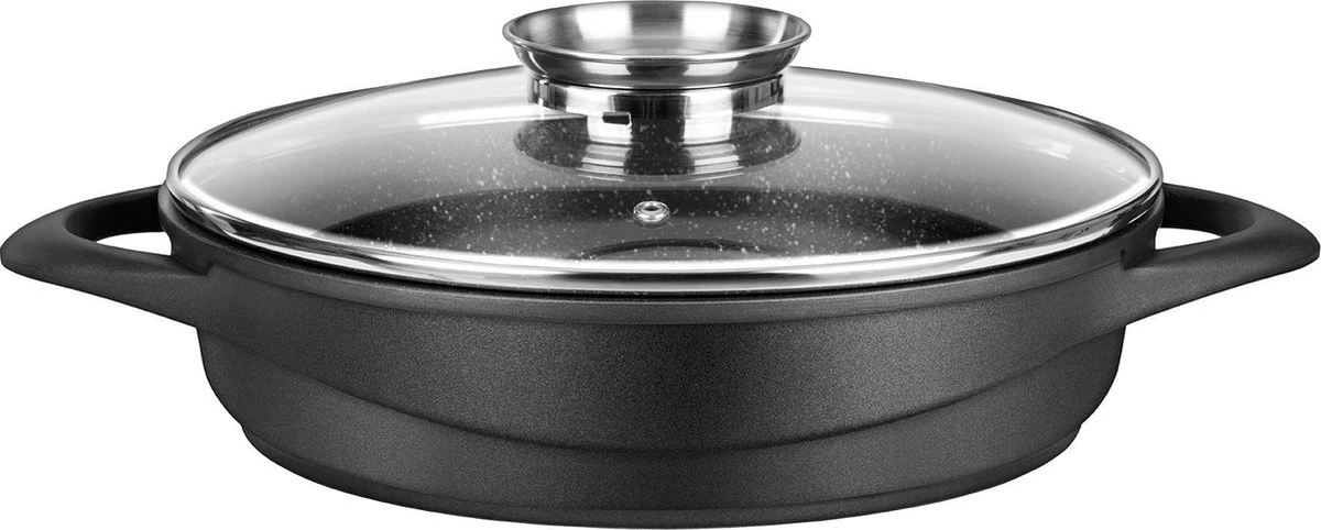 - Kookpan + glazen deksel: โ28 cm x 7 cm – 3,5 L
