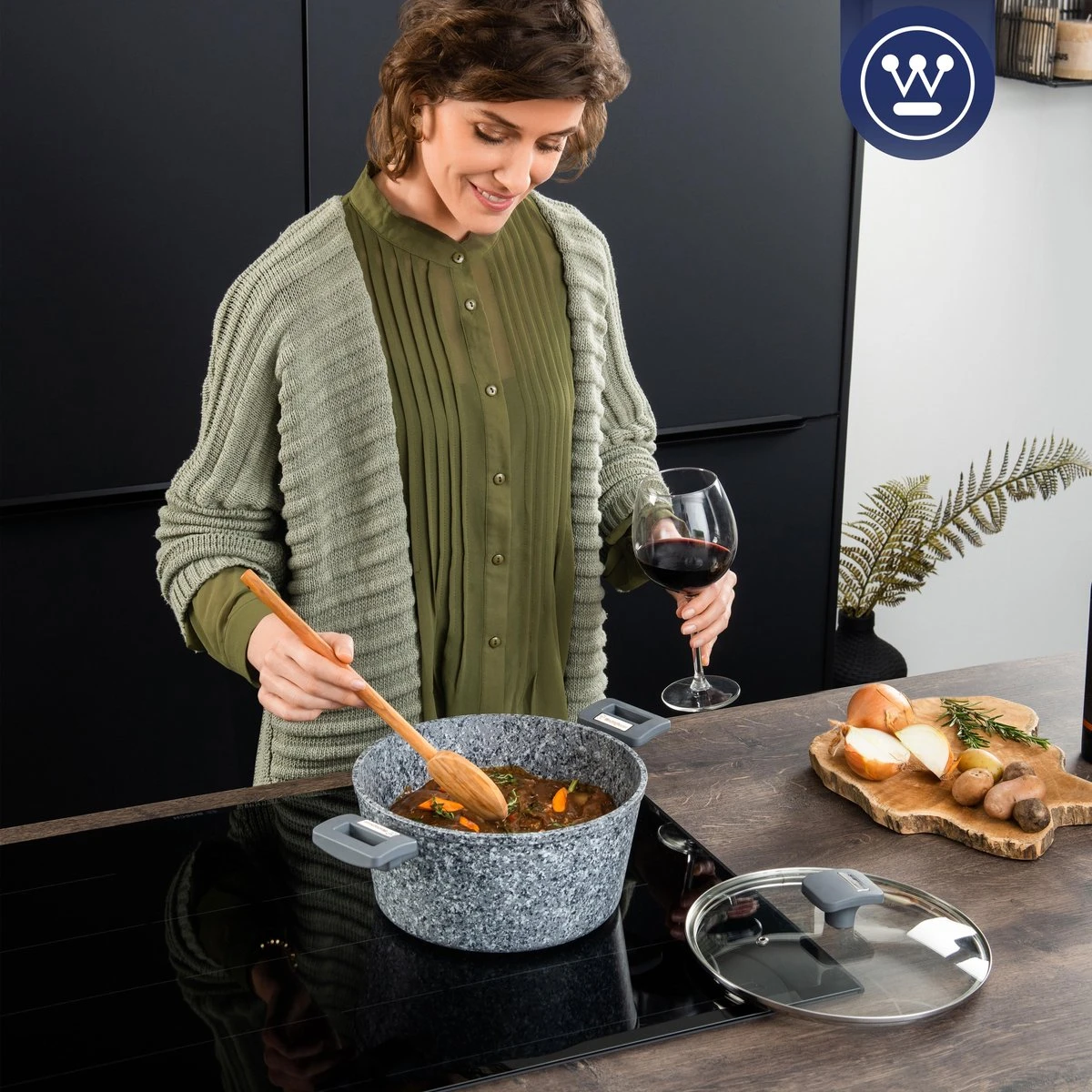 Vanaf nu ook verkrijgbaar in Nederland! Een mooie en robuuste met steen afgewerkte collectie pannen die speciaal ontworpen is voor inductie en evengoed werkt op andere fornuizen. In 2021 breiden we onze collectie uit en lanceren we ook de elektrische keuken apparatuur waar Westinghouse om bekend staat.