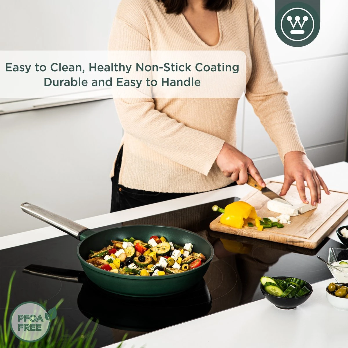 Deze pannenset bevat 1 Westinghouse Performance Series koekenpan 24cm en 1 koekenpan 28cm. De pannen uit deze koekenpannenset zijn gemaakt van lichtgewicht materiaal en bieden een uitstekende warmtegeleiding. De Performance koekenpannenset is verkrijgbaar in het Groen, Blauw, Rood en Zwart.